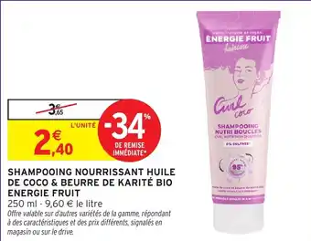 Actuellement en offre chez Intermarché : Shampooing nourrissant huile de coco & beurre de karité bio energie fruit ✅ Valable du 23-12 au 31-12.