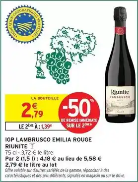Le prix de l'offre Signal - igp lambrusco emilia rouge se trouve également en haut de la page, ainsi que la date à laquelle l'offre est disponible. Vous pouvez également vérifier les prix dans le Catalogue Intermarché actuel ou sur le site Internet de Intermarché. Les offres vous permettent d'acheter les produits Intermarché au prix le plus bas.