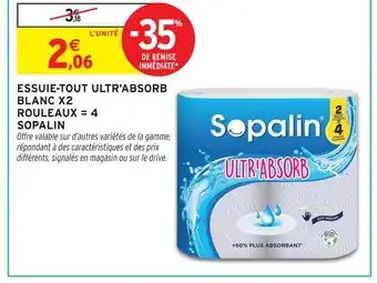 Sopalin essuie-tout ultr'absorb blanc x2 : offres et promos Intermarché à découvrir
