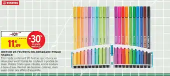 Actuellement en offre chez Intermarché : STABILO Boitier 20 feutres colorparade pen68 ✅ Valable du 3-02 au 15-02.