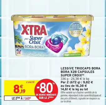 Actuellement en offre chez Intermarché : SUPER CROIX Lessive triocaps bora bora x28 capsules ✅ Valable du 30-12 au 11-01.