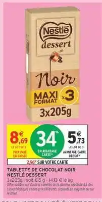 Actuellement en offre chez Intermarché : Tablette de Chocolat Noir Nestlé Dessert ✅ Valable du 24-03 au 6-04.