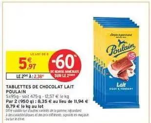 TABLETTES DE CHOCOLAT LAIT POULAIN : offres et promos Intermarché à découvrir