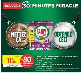 TABLETTES LAVE-VAISSELLE PLATINUM PLUS TOUT EN 1 CITRON X31 FAIRY : offres et promos Intermarché à découvrir