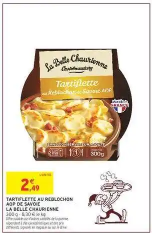 Actuellement en offre chez Intermarché : TARTIFLETTE AU REBLOCHON AOP DE SAVOIE LA BELLE CHAURIENNE ✅ Valable du 3-02 au 15-02.