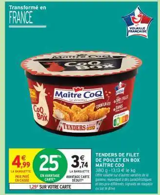 Actuellement en offre chez Intermarché : Tenders de filet de poulet en box Maître Coq ✅ Valable du 17-03 au 29-03.