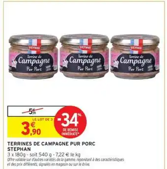 Offre TERRINES DE CAMPAGNE PUR PORC STEPHAN chez Intermarché