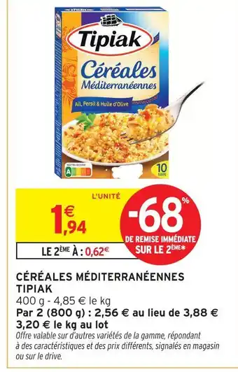 Actuellement en offre chez Intermarché : Tipiak céréales méditerranéennes ✅ Valable du 14-04 au 26-04.