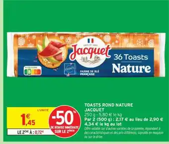 Actuellement en offre chez Intermarché : TOASTS ROND NATURE JACQUET ✅ Valable du 17-03 au 29-03.