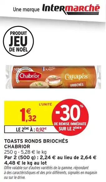Actuellement en offre chez Intermarché : Toasts ronds briochés chabrior ✅ Valable du 23-12 au 31-12.