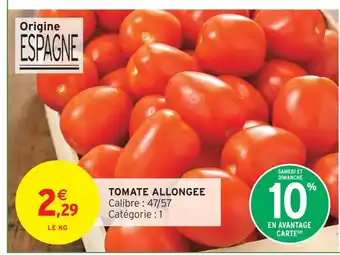 En plus de l'offre Tomate allongée, Intermarché propose une large gamme de produits. Consultez le Catalogue Intermarché hebdomadaire pour découvrir les meilleures offres et promotions. En plus de Tomate allongée, il y a aussi : Tomate allongee, Tomate cerise allongée & Tomate cerise.