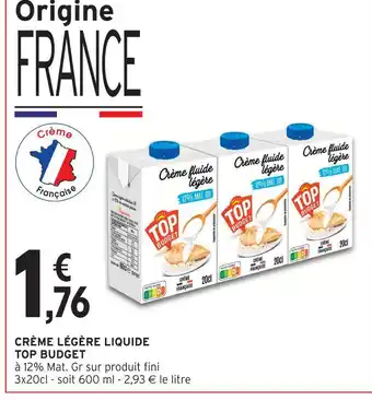 Offre Top budget crème légère liquide chez Intermarché