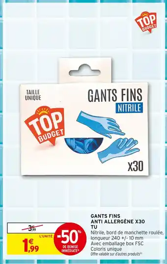 Le prix de l'offre Top budget gants fins nitrile anti allergène x30 tu se trouve également en haut de la page, ainsi que la date à laquelle l'offre est disponible. Vous pouvez également vérifier les prix dans le Catalogue Intermarché actuel ou sur le site Internet de Intermarché. Les offres vous permettent d'acheter les produits Intermarché au prix le plus bas.