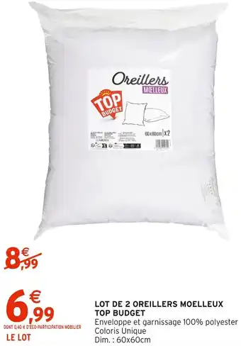 Top budget lot de 2 oreillers moelleux : offres et promos Intermarché à découvrir