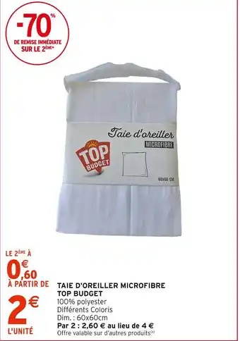 Actuellement en offre chez Intermarché : Top budget taie d'oreiller microfibre ✅ Valable du 30-12 au 11-01.