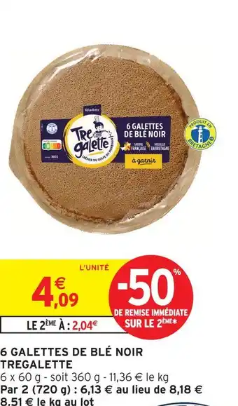 Offre Tregalette 6 galettes de blé noir chez Intermarché
