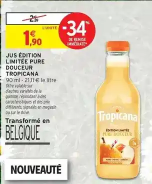 Actuellement en offre chez Intermarché : Tropicana - jus édition limitée pure douceur ✅ Valable du 28-04 au 10-05.