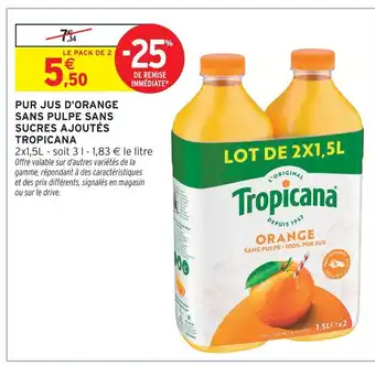 Tropicana pur jus d'orange sans pulpe sans sucres ajoutés : offres et promos Intermarché à découvrir