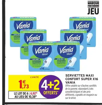 Actuellement en offre chez Intermarché : VANIA Serviettes maxi confort super x16 ✅ Valable du 13-01 au 25-01.