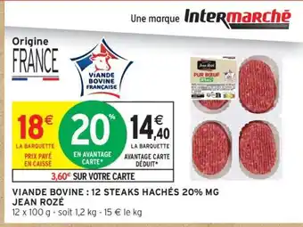 Offre VIANDE BOVINE : 12 STEAKS HACHÉS 20% MG JEAN ROZÉ chez Intermarché