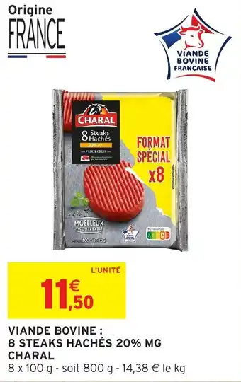 Viande bovine 8 steaks hachés 20% mg charal offres et promotions en ligne chez Intermarché