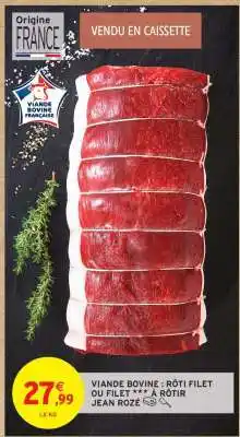Actuellement en offre chez Intermarché : VIANDE BOVINE : RÔTI FILET OU FILET *** À RÔTIR JEAN ROZÉ ✅ Valable du 27-01 au 8-02.