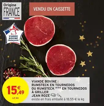 Actuellement en offre chez Intermarché : Viande bovine rumsteck en tournedos ou rumsteck en tournedos à griller jean rozé ✅ Valable du 23-12 au 31-12.