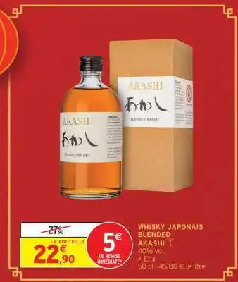 Offre WHISKY JAPONAIS BLENDED AKASHI chez Intermarché