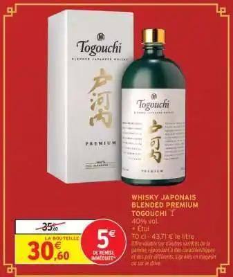 Offre WHISKY JAPONAIS BLENDED PREMIUM TOGOUCHI chez Intermarché