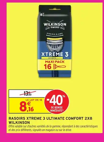 Actuellement en offre chez Intermarché : WILKINSON Rasoirs xtreme 3 ultimate comfort 2x8 ✅ Valable du 30-12 au 11-01.