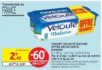 Actuellement en offre chez Intermarché : YAOURT VELOUTÉ NATURE OFFRE DÉCOUVERTE DANONE ✅ Valable du 27-01 au 8-02.