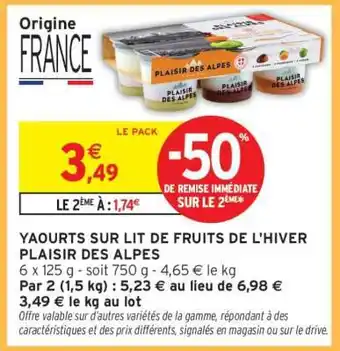 Actuellement en offre chez Intermarché : YAOURTS SUR LIT DE FRUITS DE L'HIVER PLAISIR DES ALPES ✅ Valable du 27-01 au 1-02.
