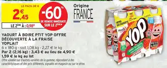Yoplait yaourt à boire ptit yop offre découverte à la fraise : offres et promos Intermarché à découvrir
