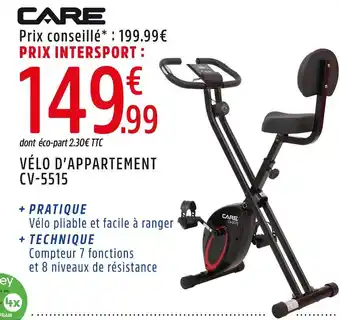 Actuellement en offre chez Intersport : Care vélo d'appartement cv-5515 ✅ Valable du 2-03 au 22-03.