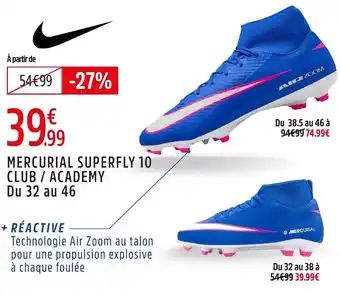 Nike mercurial superfly 10 club / academy offres et promotions en ligne chez Intersport