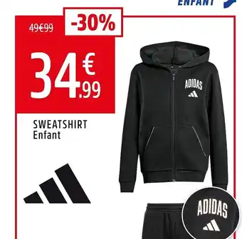 L'offre est disponible dans plusieurs magasins, vérifiez tous les produits pour obtenir le Sweatshirt enfant le moins cher. Si vous souhaitez savoir si l'article est en vente avec une plus grosse remise dans un autre magasin, consultez la catégorie 'Sport'. Ces offres pourraient aussi vous intéresser : Adidas sweatshirt enfant, Adidas sweatshirt enfant & PUMA Sweatshirt enfant.