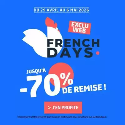 Chaque semaine, un nouveau catalogue Jardineries et Animaleries de Jardiland est publié. Sur cette page, vous trouverez toujours le dernier dépliant valable du 22-04-2026 au 03-05-2026. Cela vous permet d’être informé en temps réel des actions locales à Villenave-d'Ornon et de savoir quand le nouveau document est disponible.