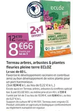 Actuellement en offre chez Jardiland : Terreau arbres, arbustes & plantes fleuries pleine terre ✅ Valable du 27-02 au 15-03.