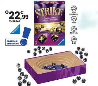 L'offre est disponible dans plusieurs magasins, vérifiez tous les produits pour obtenir le 8 strike le moins cher. Si vous souhaitez savoir si l'article est en vente avec une plus grosse remise dans un autre magasin, consultez la catégorie 'Jeux & Jouets'. Ces offres pourraient aussi vous intéresser : Ravensburger strike, Powershots strike # football & Powershots powershots strike - football.