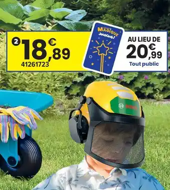 Actuellement en offre chez JouéClub : Bosch casque de forestier avec visière ✅ Valable du 8-04 au 2-05.