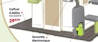 L'offre est disponible dans plusieurs magasins, vérifiez tous les produits pour obtenir le Coffret 6 dalles le moins cher. Si vous souhaitez savoir si l'article est en vente avec une plus grosse remise dans un autre magasin, consultez la catégorie 'Jeux & Jouets'. Ces offres pourraient aussi vous intéresser : La dalles, Graf 4 dalles de potager & Lot de 6 dalles en bois.