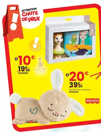 Le prix de l'offre Coffret de bain sophie la girafe se trouve également en haut de la page, ainsi que la date à laquelle l'offre est disponible. Vous pouvez également vérifier les prix dans le Catalogue JouéClub actuel ou sur le site Internet de JouéClub. Les offres vous permettent d'acheter les produits JouéClub au prix le plus bas.