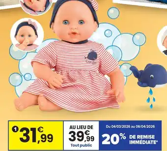 Actuellement en offre chez JouéClub : Corolle bébé bain calypso!- baleine ✅ Valable du 3-03 au 6-04.