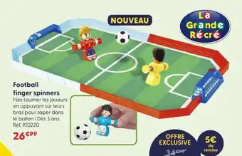 En plus de l'offre Football finger spinners, JouéClub propose une large gamme de produits. Consultez le Catalogue La Grande Récré hebdomadaire pour découvrir les meilleures offres et promotions. En plus de Football finger spinners, il y a aussi : Football finger spinners, Jeu de football électronique & Kit kat 4 finger nestlé.