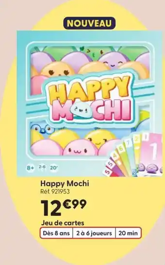 En plus de l'offre Happy Mochi, JouéClub propose une large gamme de produits. Consultez le Catalogue La Grande Récré hebdomadaire pour découvrir les meilleures offres et promotions. En plus de Happy Mochi, il y a aussi : Happy mochi, HAPPY SALMON & Gâteau happy birthday.