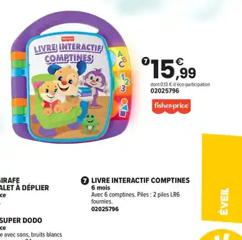 Dans quel magasin Livre interactif comptines sera-t-elle en promo la semaine prochaine ? C’est une question que l’on nous pose souvent. C’est normal, car personne ne souhaite payer plus que nécessaire. Notre équipe surveille toutes les promotions disponibles et les publie dès qu’elles sont connues. Vous pouvez donc ajuster votre liste de courses avec les offres actuelles ou celles de la semaine prochaine. Revenez souvent vérifier si Livre interactif comptines sera bientôt proposée avec une réduction avantageuse.Questions fréquemment posées au sujet de Livre interactif comptines