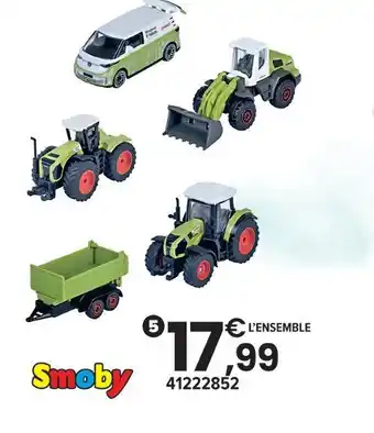 Le prix de l'offre Smoby majorette ferme class 5 pièces se trouve également en haut de la page, ainsi que la date à laquelle l'offre est disponible. Vous pouvez également vérifier les prix dans le Catalogue JouéClub actuel ou sur le site Internet de JouéClub. Les offres vous permettent d'acheter les produits JouéClub au prix le plus bas.