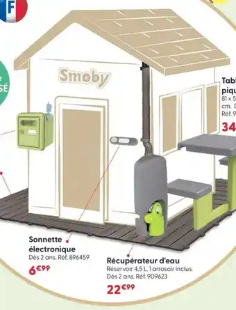 Le prix de l'offre Sonnette électronique se trouve également en haut de la page, ainsi que la date à laquelle l'offre est disponible. Vous pouvez également vérifier les prix dans le Catalogue La Grande Récré actuel ou sur le site Internet de JouéClub. Les offres vous permettent d'acheter les produits JouéClub au prix le plus bas.