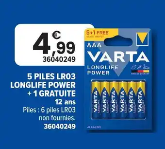 Actuellement en offre chez JouéClub : Varta 5 piles lr03 longlife power + 1 gratuite ✅ Valable du 4-03 au 6-04.