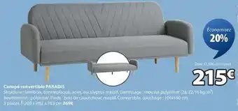 Le prix de l'offre Champs convertible se trouve également en haut de la page, ainsi que la date à laquelle l'offre est disponible. Vous pouvez également vérifier les prix dans le Catalogue JYSK actuel ou sur le site Internet de JYSK. Les offres vous permettent d'acheter les produits JYSK au prix le plus bas.